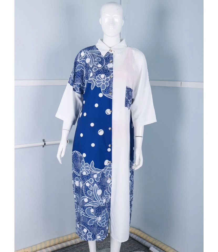 Loose Puff Sleeve One Shoulder Printed Dress Wholesale Plus Size Casual Dresses N3823100900056