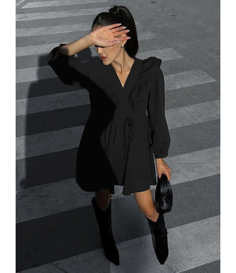 Elegant Flower Petal Sleeve Solid Color Square Neck Long Dress Wholesale Dresses V5923041200032
