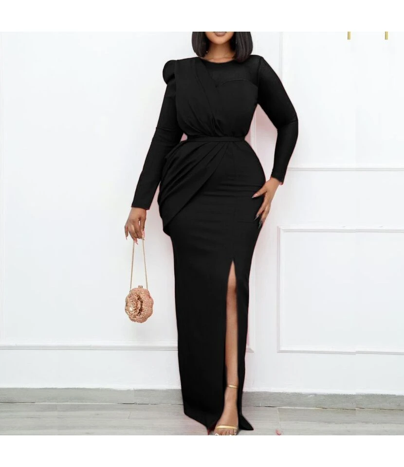 Fashion Solid Color V-Neck Bubble Long Sleeve Fishtail Dress Wholesale Dresses V5923050500012