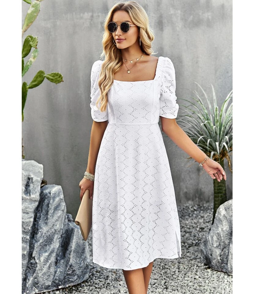 Temperament Round Neck Strapless Short-Sleeved Pleated Waist Dress Wholesale Dresses N5323032800183