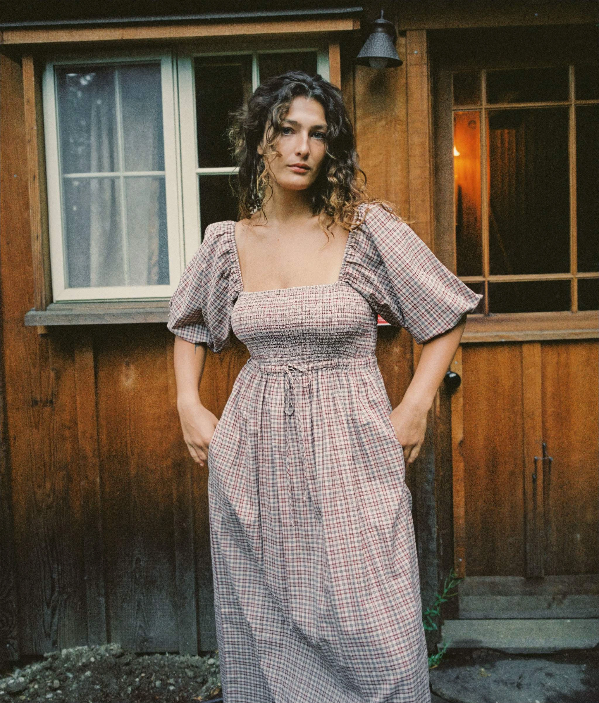 - Short-sleeved midi dress with pockets