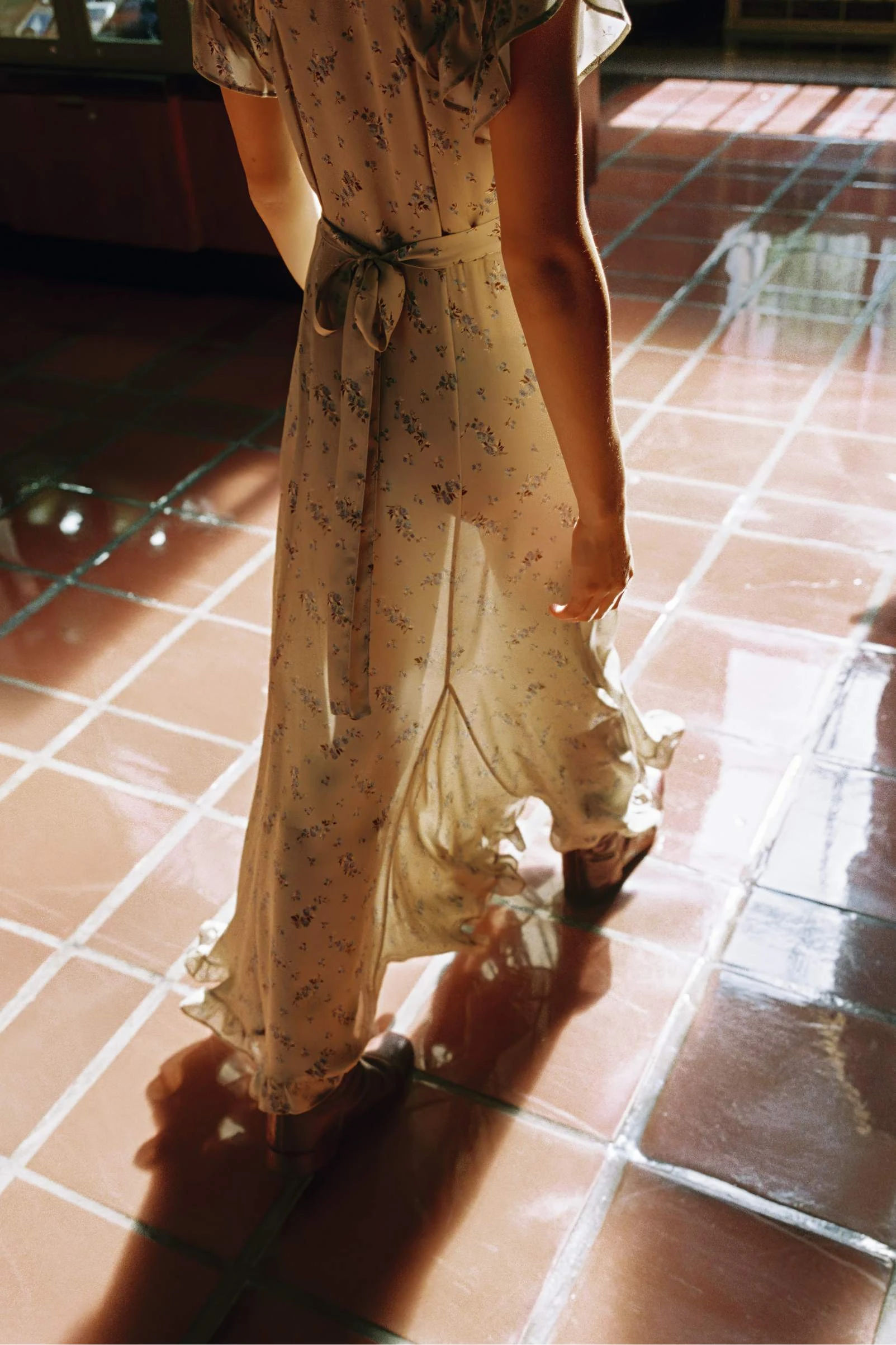 - Waist ties, invisible zipper on side seam