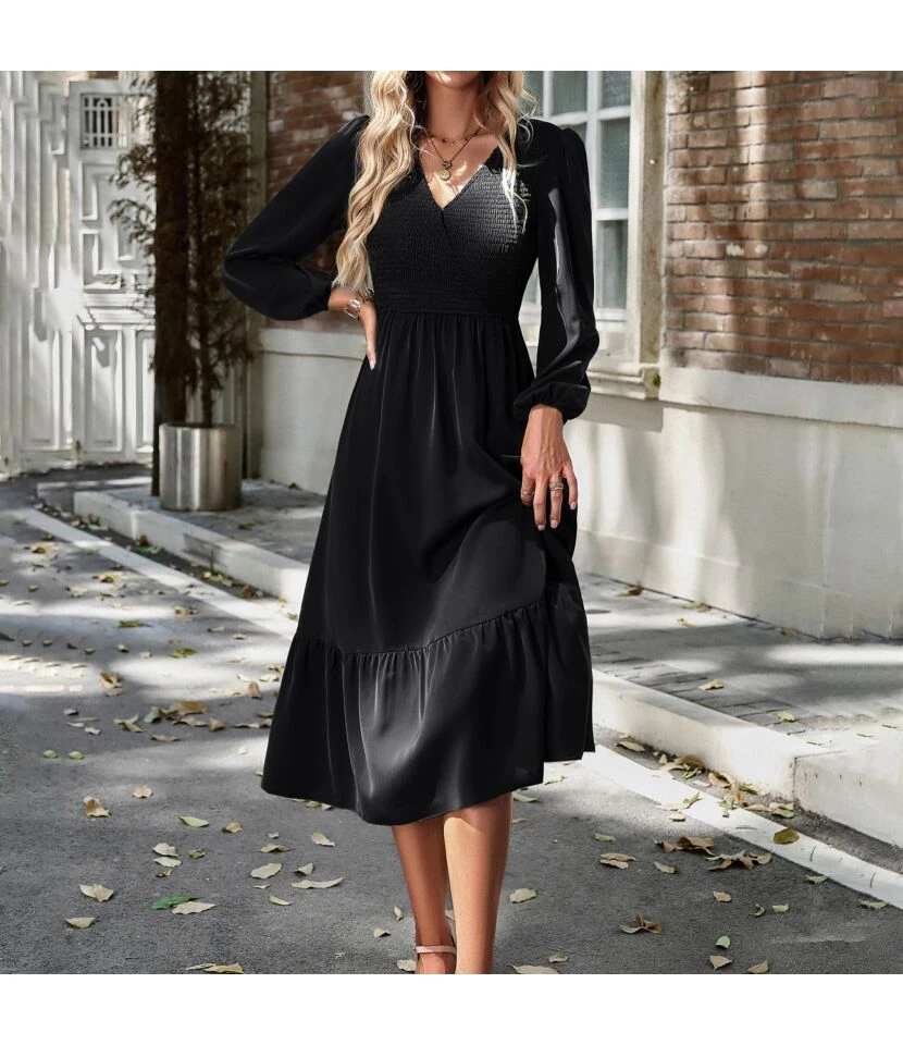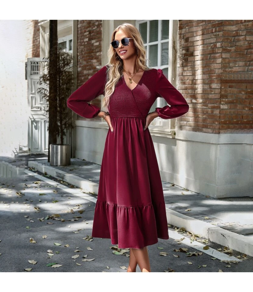 Sexy V-Neck Ruffles Dress Three-Quarter Sleeve Solid Color Wholesale Dresses SDN561494