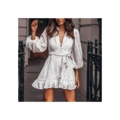 Be the first to review “V Neck Solid Color Long Sleeve Ruffles Lace Swing Dress Chic Vacation Wholesale Dresses SD531768” Cancel reply