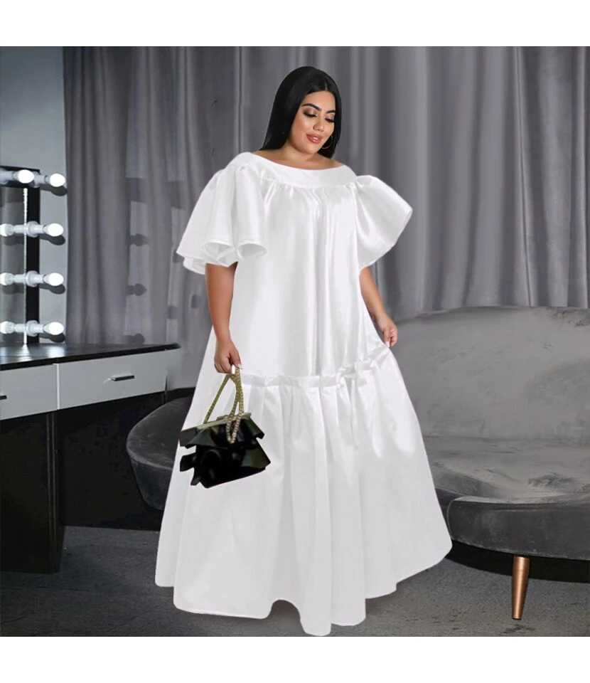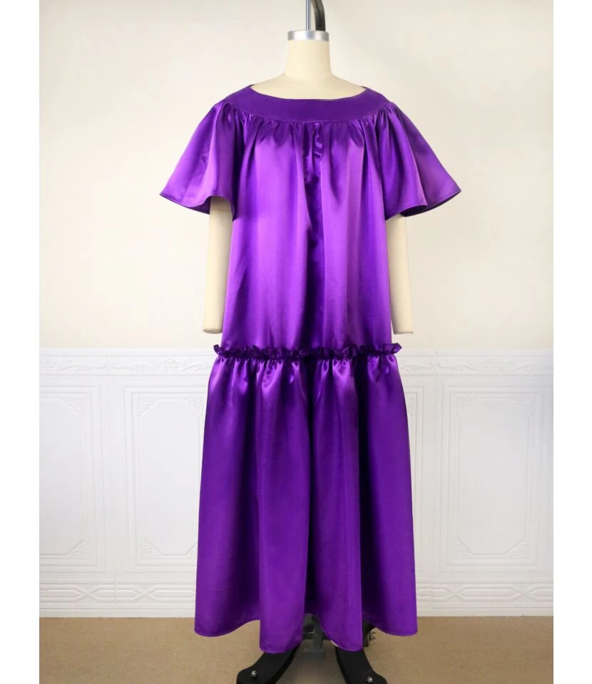 Solid Color V-Neck Waist Short-Sleeve Casual Ruffled Dress Wholesale Dresses SDN537952