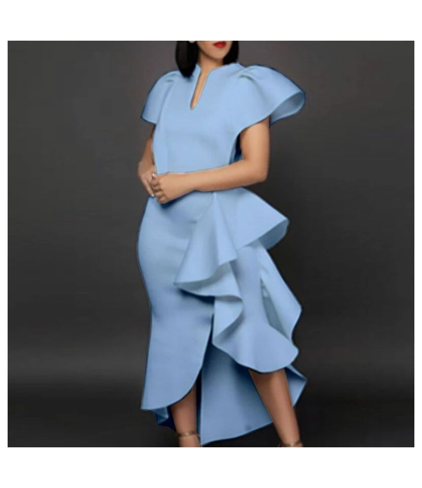 Elegant Flared Sleeve Round Neck Wrap Hip Pencil Dress Wholesale Dresses N5923080800079